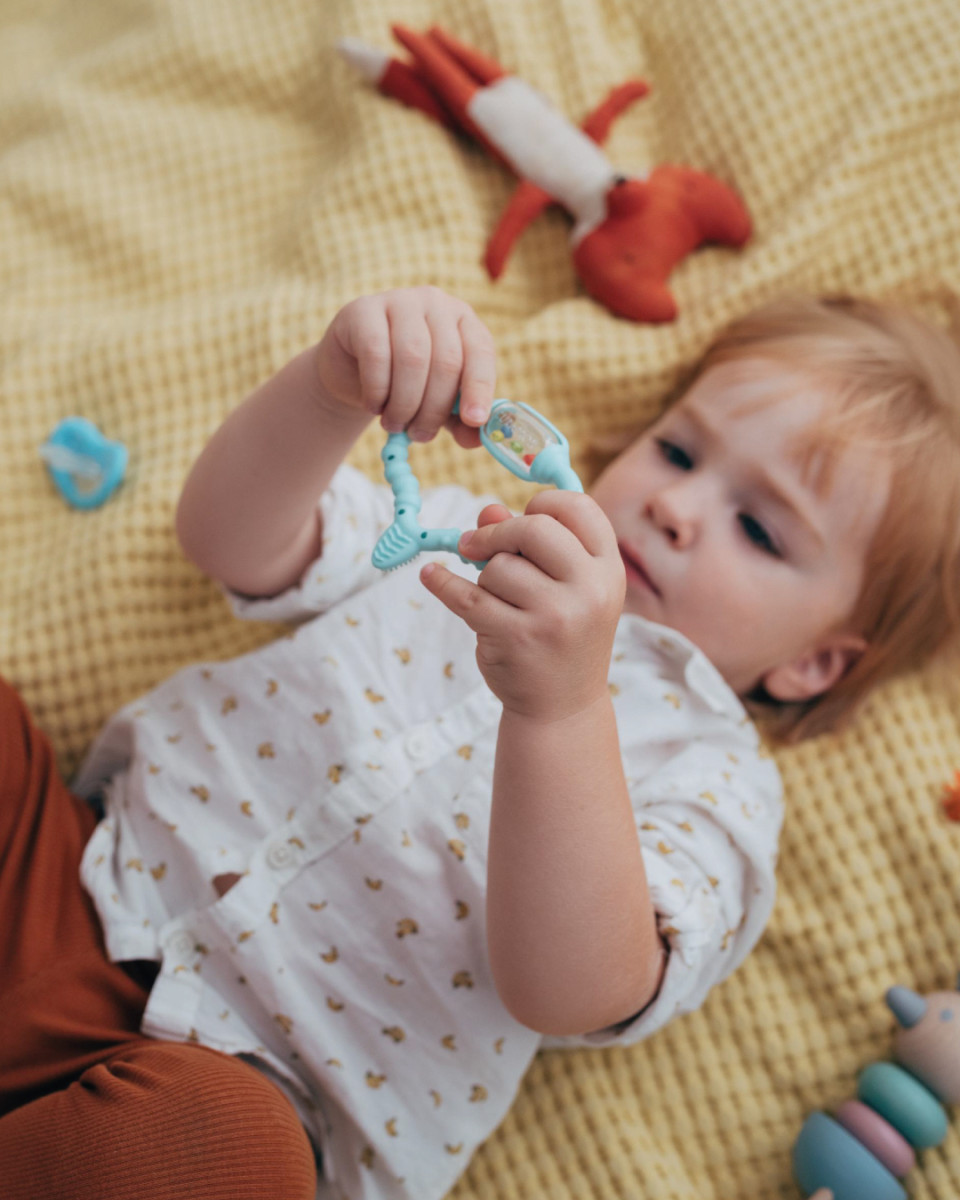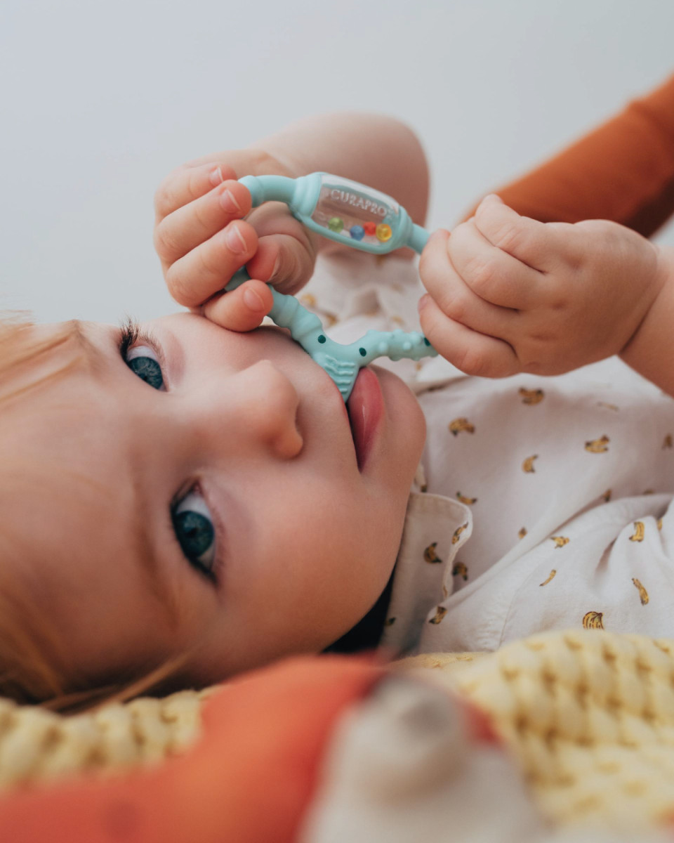 • bábätká milujú hryzadielko CURAPROX Baby s nekonečným množstvom zaujímavých povrchov, materiálov a zvukov