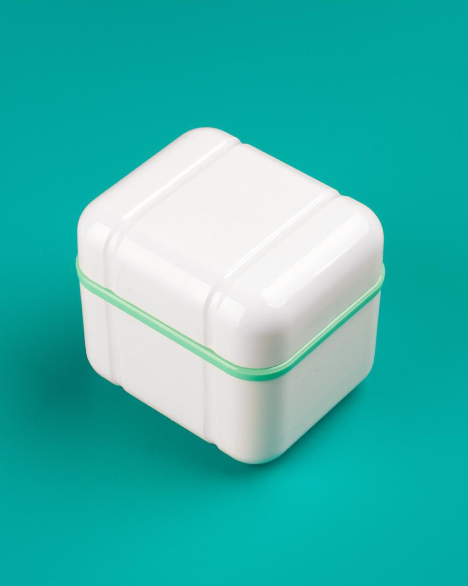 Používajte túto čistiacu škatuľku, s praktickou mriežkou, čím vašej zubnej náhrade (úplnej alebo čiastočnej) alebo strojčeku poskytnete čistiaci kúpeľ na týždennej báze, s použitím produktu BDC 105 weekly.