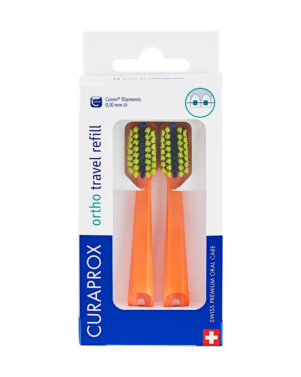 Cestovné sety pre tých, ktorí nosia zubný strojček, obsahujú skladaciu kefku CS 5460 ortho. Jej horná časť je k dispozícii aj samostatne v týchto krásnych dvojbaleniach. Myslíme totiž aj na prírodu - spodná časť kefky vám ostáva a hornú nám môžete priniesť na zrecyklovanie.
